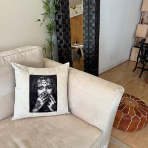 Dimensions: 22”x15”. Crafted in Morocco from natural cactus silk, this terracotta pillow brings earthy charm and handmade beauty to your home.