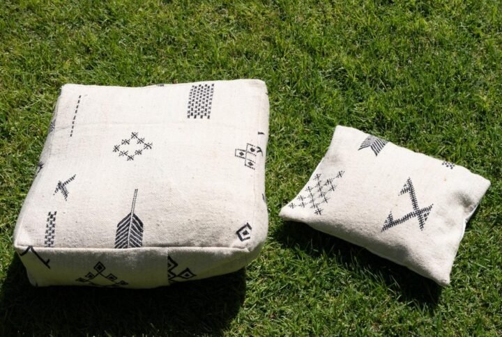 Dimensions: 20”x20”. Handwoven in Morocco, this structured straw bag features leather handles and a clasp closure for an elegant, artisanal finish.